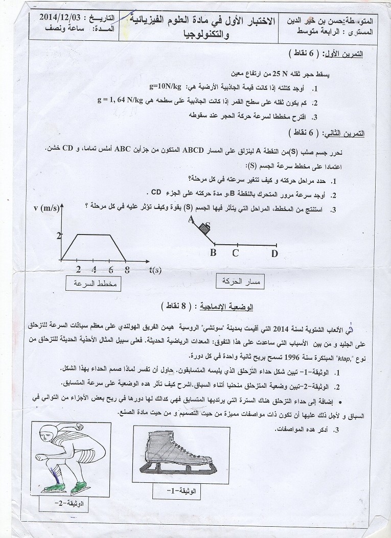 إختبار الفصل الأول في مادة العلوم الفيزيائية و التكنولوجية الرابعة متوسط 2014-2015 – متوسطة حسن بن خير الدين إختبار الفصل الأول في مادة العلوم الفيزيائية و التكنولوجية الرابعة متوسط 2014-2015 – متوسطة حسن بن خير الدين: