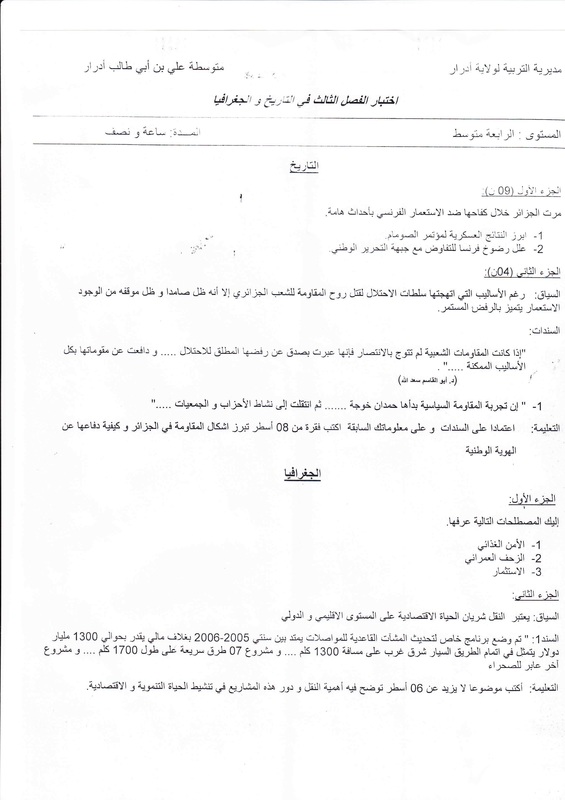 اختبار الفصل الثالث في التاريخ و الجغرافيا للسنة الثالثة متوسط – متوسطة علي بن أبي طالب اختبار الفصل الثالث في التاريخ و الجغرافيا للسنة الثالثة متوسط – متوسطة علي بن أبي طالب: