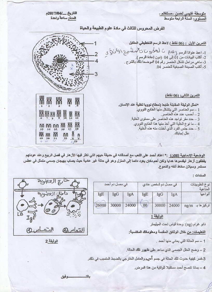 الفرض المحروس الثالث في علوم الطبيعة و الحياة سنة 4 متوسط – 2016-2017 – متوسطة غنيسي لحسن – مستغانم الفرض المحروس الثالث في علوم الطبيعة و الحياة سنة 4 متوسط – 2016-2017 – متوسطة غنيسي لحسن – مستغانم: