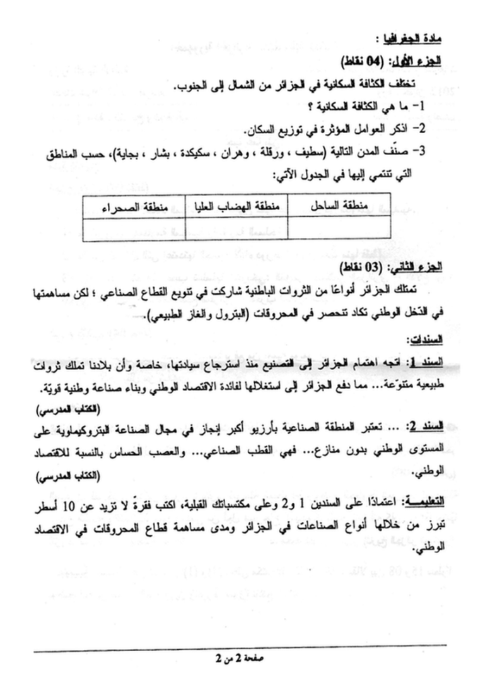 • موضوع + التصحيح النموذجي في التاريخ و الجغرافيا شهادة التعليم المتوسط 2008