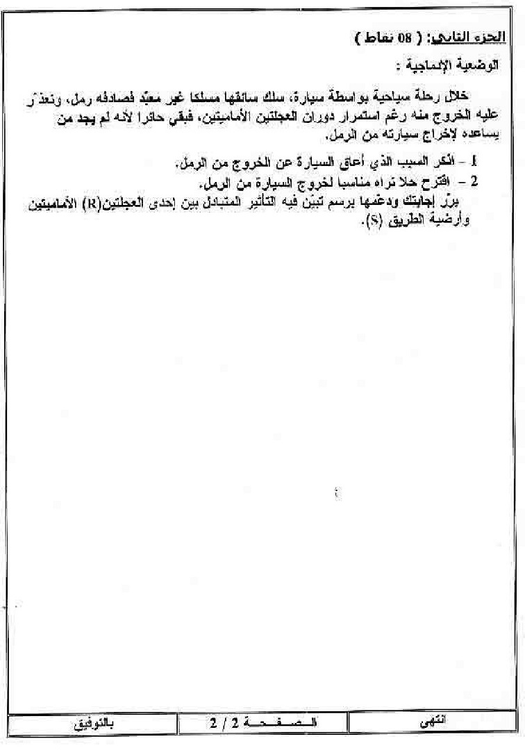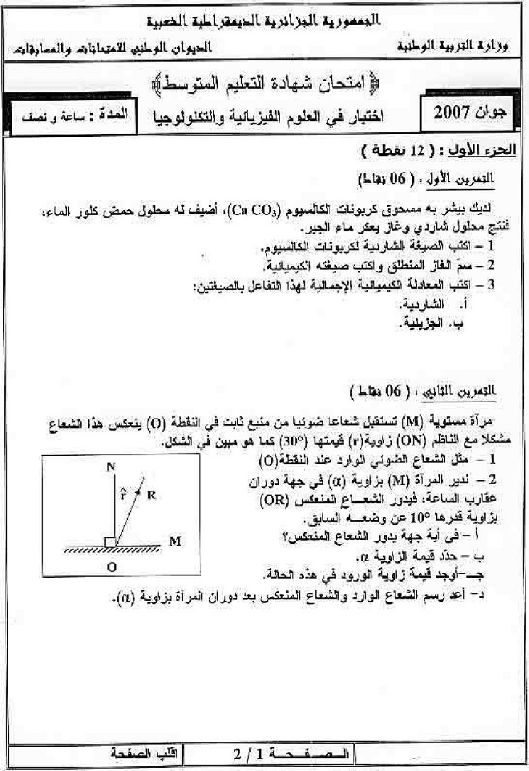 موضوع + التصحيح النموذجي في العلوم الفيزيائية و التكنولوجية شهادة التعليم المتوسط 2007