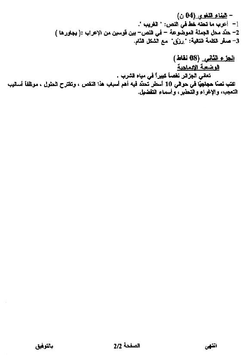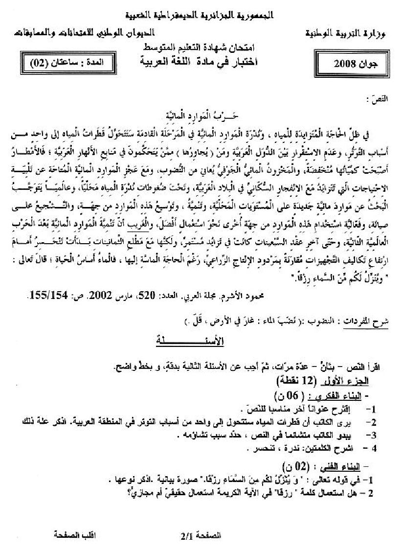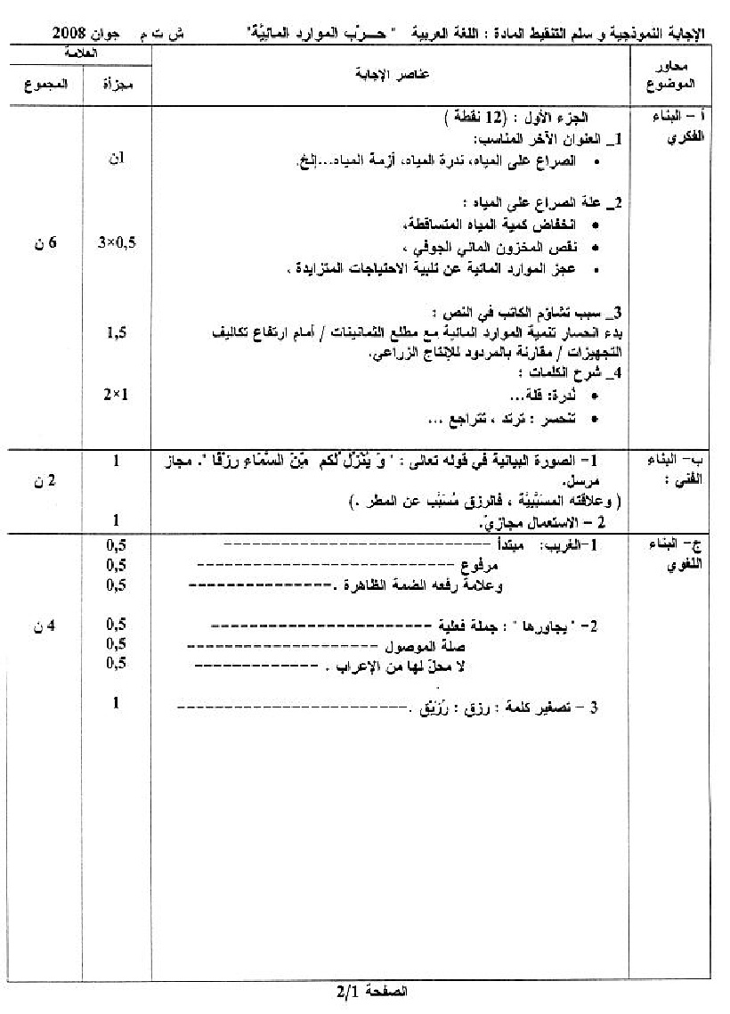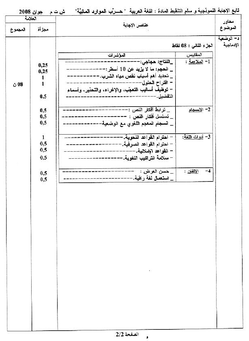 موضوع + التصحيح النموذجي في اللغة العربية شهادة التعليم المتوسط 2008